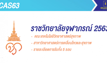 นักเรียน รายละเอียดการรับผ่านระบบ TCAS63 สาขาวิทยาศาสตร์การเคลื่อนไหวและสุขภาพ ราชวิทยาลัยจุฬาภรณ์ EZ Webmaster October 11, 2019 คณะเทคโนโลยีวิทยาศาสตร์สุขภาพ ราชวิทยาลัยจุฬาภรณ์ ประกาศ การคัดบุคคลเข้าศึกษา หลักสูตรวิทยาศาสตรบัณฑิต สาขาวิทยาศาสตร์การเคลื่อนไหวและสุขภาพ ผ่าน #TCAS63 เปิดรับ 50 คน รอบที่ 1 #Portfolio รับ 30 คน รอบที่ 2 #โควตา รับ…