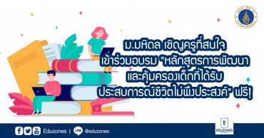 ม.มหิดล เชิญครูที่สนใจเข้าร่วมอบรม “หลักสูตรการพัฒนาและคุ้มครองเด็กที่ได้รับประสบการณ์ชีวิตไม่พึงประสงค์” ฟรี! EZ Webmaster August 23, 2021 มหาวิทยาลัยมหิดล ขอเชิญคุณครู ผู้ดูแลเด็กในสถานพัฒนาเด็กปฐมวัย โรงเรียนอนุบาล หน่วยงานบริการเด็กปฐมวัยทุกรูปแบบ ทั้งในและนอกสถานศึกษา รวมถึงผู้ให้บริการสุขภาพ ในสถานพยาบาล เจ้าหน้าที่ที่เกี่ยวข้องกับการพัฒนาและคุ้มครองเด็กทุกระดับ เข้าร่วมอบรม “หลักสูตรการพัฒนาและคุ้มครองเด็กที่ได้รับประสบการณ์ชีวิตไม่พึงประสงค์” ได้ฟรี ไม่มีค่าใช้จ่าย โดยการอบรมหลักสูตรนี้ จะเรียนออนไลน์ผ่านระบบ MOODLE E-LEARNING เป็นหลักสูตรที่มี 10 บทเรียน ผู้เรียนจะเข้าเรียนเมื่อไหร่ก็ได้ ตามเวลาที่สะดวกให้ครบหลักสูตร โดยสามารถเริ่มสมัครได้ตั้งแต่วันที่ 23 สิงหาคม 2564 ผ่านทางช่องทางออนไลน์ >>> คลิก https://docs.google.com/forms/d/e/1FAIpQLSeiXR99JPVcYrcjsZQO0V3CAjDfrYI5BhOzofWwAu4yYJ9Geg/viewform สำหรับผู้ที่สนใจศึกษารายละเอียดเพิ่มเติมเกี่ยวกับหลักสูตร โทร. 081-408-2590 (คุณงามตา), รายละเอียดการลงทะเบียนเพิ่มเติม โทร. 089-911-4795 (บุศราพร) หรือผ่านการแฟนเพจเฟซบุ๊ก… Continue Reading