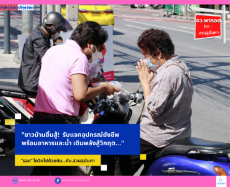 tui sakrapee August 17, 2021 ชาวบ้านยิ้มสู้! อว.พารอด โดยสวนสุนันทา แจกอุปกรณ์ยังชีพพร้อมอาหาร พา “รอด” โควิดไปด้วยกัน…กับ สวนสุนันทา เป็นวันที่สอง tui sakrapee August 17, 2021 ประชาชนเข้าร่วมกิจกรรม อว.พารอด โดยสวนสุนันทา “รอด” โควิดไปด้วยกัน … กับ สวนสุนันทา เป็นวันที่สอง วันที่ 17 สิงหาคม 2564 มหาวิทยาลัยราชภัฏสวนสุนันทา โดย รองศาสตราจารย์ ดร.ชุติกาญจน์ ศรีวิบูลย์ อธิการบดีมหาวิทยาลัยราชภัฏสวนสุนันทา เป็นประธานกิจกรรมในการมอบถุงอุปกรณ์ยังชีพป้องกันการแพร่ระบาดโรคโควิด – 19 รวมถึงอาหารและน้ำดื่มให้แก่ประชาชน โดยรอบมหาวิทยาลัย เป็นวันที่สอง เพื่อส่งผ่านกำลังใจให้ทุกคน ร่วมผ่านวิกฤตโควิดนี้ไปด้วยกัน กับโครงการ อว.พารอด โดยสวนสุนันทา “รอด” โควิดไปด้วยกัน… Continue Reading