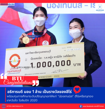“น้องเทนนิส” ฮีโร่เหรียญทองเทควันโด” โอลิมปิก 2020 สุดซึ้งคุณแม่อธิการบดี ม.กรุงเทพธนบุรี ดูแลอย่างอบอุ่น มอบเงินรางวัล 1 ล้านบาท พร้อมทุนการศึกษาระดับปริญญาเอก tui sakrapee August 15, 2021 “น้องเทนนิส” ฮีโร่เหรียญทองเทควันโด” โอลิมปิก 2020 สุดซึ้งคุณแม่อธิการบดี ม.กรุงเทพธนบุรี ดูแลอย่างอบอุ่น มอบเงินรางวัล 1 ล้านบาท พร้อมทุนการศึกษาระดับปริญญาเอก รศ.ดร.บังอร เบ็ญจาธิกุล อธิการบดีมหาวิทยาลัยกรุงเทพธนบุรี มอบเงินรางวัลจำนวน 1 ล้านบาท และมอบทุนการศึกษาระดับปริญญาเอกให้แก่ “น้องเทนนิส” เรืออากาศตรีหญิง พาณิภัค วงศ์พัฒนกิจ พร้อมกล่าวชื่นชมในความสำเร็จของ “น้องเทนนิส” ด้านการกีฬา ซึ่งการมอบรางวัลดังกล่าว เพื่อเป็นขวัญกำลังใจที่ได้รับรางวัลเหรียญทองกีฬาเทควันโดจากการเข้าร่วมแข่งขันกีฬาโอลิมปิกเกมส์ 2020 ครั้งที่ 32 ประเทศญี่ปุ่น และถือเป็นการสร้างชื่อเสียงเกียรติประวัติให้แก่ครอบครัว ประเทศชาติ และมหาวิทยาลัยฯ ในฐานะที่ “น้องเทนนิส” เป็นนักศึกษาระดับปริญญาโท มหาวิทยาลัยกรุงเทพธนบุรี รศ.ดร.บังอร เบ็ญจาธิกุล อธิการบดี มหาวิทยาลัยกรุงเทพธนบุรี… Continue Reading