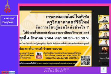 สวนสุนันทาจับมือสพม.ปทุมธานีจัดอบรมเพิ่มสมรรถนะการเรียนรู้ออนไลน์ครูวิทยาศาสตร์วิถีใหม่ tui sakrapee August 4, 2021 วันที่ 4 สิงหาคม พ.ศ.2564 เวลา 08.30-16.00 น. คณะครุศาสตร์ มหาวิทยาลัยราชภัฏสวนสุนันทา ร่วมกับสำนักงานเขตพื้นที่การศึกษามัธยมศึกษาปทุมธานี (สพม.) จ.ปทุมธานี จัดอบรมหัวข้อ “ครูวิทยาศาสตร์วิถีใหม่ จัดการเรียนรู้ออนไลน์อย่างไร ให้น่าสนใจและสะท้อนธรรมชาติของวิทยาศาสตร์” ผ่านระบบออนไลน์ ผศ.กรกมล ชูช่วย ตำแหน่ง ในฐานะผู้ประสานงานโครงการ กล่าวว่า “โครงการดังกล่าวนี้เป็นการจัดขึ้นเพื่อพัฒนาสมรรถนะในการจัดการเรียนรู้ออนไลน์ของครูวิทยาศาสตร์ ที่เน้นการจัดกิจกรรมการเรียนรู้แบบ Active Learning โดยประยุกต์ใช้ดิจิทัลแพลตฟอร์มและ แอปพลิเคชั่นที่หลากหลายในการจัดการเรียนรู้วิทยาศาสตร์เพื่อพัฒนาคุณภาพผู้เรียนอย่างมีประสิทธิภาพ ตลอดจนเป็นการส่งเสริมให้ครูวิทยาศาสตร์สามารถพัฒนานวัตกรรมการเรียนรู้วิทยาศาสตร์นําไปสู่ ความก้าวหน้าทางวิชาชีพ ซึ่งมีผู้สนใจเข้าร่วมการอบรมในครั้งนี้ ประกอบด้วยนิสิต นักศึกษา ครูอาจารย์และ ผู้ที่สนใจจากทุกสังกัดทั่วประเทศกว่า 2,500 คน” ในการอบรมครั้งนี้ มี ผศ.ดร.สุทธิดา จำรัส อาจารย์คณะศึกษาศาสตร์… Continue Reading