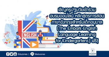เชิญครูปฐมวัยเข้าร่วมอบรมออนไลน์ หลักสูตรการสอนภาษาอังกฤษสำหรับเด็กอนุบาล (The Embark English Language Learning for Kindergartens) ฟรี! EZ Webmaster July 24, 2021 ขอเชิญคุณครูปฐมวัยเข้าร่วมอบรมออนไลน์ใน หลักสูตรการสอนภาษาอังกฤษสำหรับเด็กอนุบาล : The Embark English Language Learning for Kindergartens ฟรีไม่มีค่าใช้จ่าย โดยหลักสูตรนี้มีวัตถุประสงค์เพื่อพัฒนาครู 3 ด้าน คือ ด้านความรู้และทฤษฎี ด้านทักษะการสอน และด้านเทคโนโลยี เพื่อให้ครูสามารถเรียนรู้เพื่อพัฒนาทักษะภาษาและการสอน เพื่อนำไปจัดประสบการณ์ และกิจกรรมการเรียนการสอนให้กับเด็กวัยอนุบาลได้อย่างมีประสิทธิภาพ สิ่งที่ผู้เข้าอบรมจะได้รับ -Certificate ที่ได้รับการรับรองชั่วโมงการพัฒนาจาก สพฐ. (45 ชั่วโมง) -ได้รับสิทธิ์เข้าใช้โปรแกรม Embark พร้อมแผนการสอน และสื่อการสอนที่พร้อมใช้งานตลอดปี เงื่อนไขในการเข้าร่วมอบรม -เป็นข้าราชการครูที่จบเอกปฐมวัย และสอนภาษาอังกฤษในระดับชั้นปฐมวัย (ไม่จำเป็นต้องจบเอกภาษาอังกฤษ) สังกัด สำนักงานคณะกรรมการการศึกษาขั้นพื้นฐาน -ผู้เข้าร่วมอบรมจำกัด โรงเรียนละ 2… Continue Reading