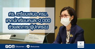 ศธ. เตรียมเสนอ ครม. แจกนักเรียนคนละ 2,000 ช่วยลดภาระผู้ปกครอง EZ Webmaster July 24, 2021 ล่าสุด รัฐมนตรีว่าการกระทรวงศึกษาธิการ นางสาวตรีนุช เทียนทอง เปิดเผยว่า ในการประชุมหารือการออกมาตรการลดภาระค่าใช้จ่ายด้านการศึกษา เพื่อบรรเทาผลกระทบของผู้ปกครอง นักเรียน และนักศึกษา เนื่องจากสถานการณ์การแพร่ระบาดของโควิด-19 ซึ่งมี พล.อ.ประยุทธ์ จันทร์โอชา นายกรัฐมนตรี เป็นประธาน เมื่อวันที่ 21 ก.ค.ที่ผ่านมานั้น กระทรวงศึกษาธิการ ได้เสนอ 4 มาตรการ มาตรการที่ 1 การให้ความช่วยเหลือภาระค่าใช้จ่ายด้านการศึกษา ช่วยเหลือค่าใช้จ่ายในการเรียนรู้ของนักเรียน นักศึกษา ในวัยเรียนการศึกษาขั้นพื้นฐาน ทั้งสายสามัญศึกษาและสายอาชีพ ในสถานศึกษาของรัฐและเอกชน รวมประมาณ 10.8 ล้านคน ในอัตรา 2,000 บาทต่อคน รวมเป็นเงินประมาณ 21,600 ล้านบาท โดยใช้ฐานข้อมูลเรียนฟรี 15 ปี… Continue Reading