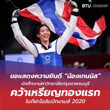 อธิการ “บังอร” มกธ.ประกาศมอบ 1 ล้านบาทให้น้องเทนนิส หลังคว้าทองประวัติศาสตร์เทควันโด tui sakrapee July 24, 2021 อธิการบดีม.กรุงเทพธนบุรี “ดร.บังอร” ประกาศมอบเงินสด 1 ล้านบาทให้ น้อง “เทนนิส”พาณิภัค วงศ์พัฒนกิจ จอมเตะหมายเลข 1 ของโลก ที่คว้าเหรียญทองที่ 10 ให้กับทัพนักกีฬาไทยในโอลิมปิก และถือเป็นเหรียญทองแรกใน “โตเกียวเกมส์ 2020” หลังชนะคู่แข่งจากสเปน พร้อมรับเงินอัดฉีดอีก 12 ล้านบาทกองทุนพัฒนาการกีฬาแห่งชาติ เผยนักกีฬาม.กรุงเทพธนบุรีลงชิงชัยในศึกครั้งนี้ถึง 8 คน ถ้าคว้าเหรียญทองรับอัดฉีดจากอธิการบังอรทันทีคนละ 1 ล้านบาทเช่นเดียวกัน การแข่งขันเทควันโด โอลิมปิกเกมส์ 2020 ที่ประเทศญี่ปุ่น รอบชิงชนะเลิศ รุ่น 49 กก.หญิง “เทนนิส” พาณิภัค วงศ์พัฒนกิจ แชมป์โลก 2 สมัย และเหรียญทองแดง… Continue Reading