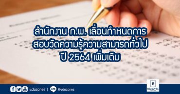 สำนักงาน ก.พ. เลื่อนกำหนดการสอบความรู้ความสามารถทั่วไป ปี 2564 เพิ่มเติม EZ Webmaster July 23, 2021 สำนักงาน ก.พ. ประกาศเลื่อนกำหนดการสอบเพื่อวัดความรู้ความสามารถทั่วไป ประจำปี 2564 เพิ่มเติม โดยจะประกาศกำหนดการใหม่ภายใน 30 กันยายนนี้ ตามที่สำนักงาน ก.พ. ได้เปิดรับสมัครสอบเพื่อวัดความรู้ความสามารถทั่วไป ประจำปี 2564 โดยกำหนดการสอบข้อเขียนเพื่อวัดความรู้ความสามารถทั่วไป ในวันที่ 20 มิถุนายน และวันที่ 4 กรกฎาคม 2564 เป็นวันที่ 22 สิงหาคม 2564 และวันที่ 19 กันยายน 2564 นั้น เนื่องจากสถานการณ์การแพร่ระบาดของโรคติดเชื้อไวรัสโคโรนา 2019 ได้ขยายขอบเขตการแพร่โรคออกเป็นวงกว้างกระจายไปในหลายพื้นที่และมีอัตราการแพร่ระบาดที่สูงขึ้น เพื่อความปลอดภัยของผู้เข้าสอบทุกท่าน สำนักงาน ก.พ. จึงขอเลื่อนกำหนดการสอบเพื่อวัดความรู้ความสามารถทั่วไป ประจำปี 2564 จากเดิม วันอาทิตย์ที่… Continue Reading