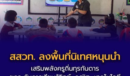 Blogครู-อาจารย์นักศึกษา สสวท. ลงพื้นที่นิเทศหนุนนำ เสริมพลังครูถิ่นทุรกันดาร ยกระดับการเรียนรู้วิทย์–คณิต–เทคโนโลยี ภายใต้โครงการพระราชดำริฯ ปีงบฯ 2569 EZ Webmaster February 18, 2026 สถาบันส่งเสริมการสอนวิทยาศาสตร์และเทคโนโลยี (สสวท.) เดินหน้าขับเคลื่อนคุณภาพการศึกษาอย่างต่อเนื่อง ลงพื้นที่นิเทศหนุนนำและสังเกตการณ์การจัดการเรียนรู้ในโรงเรียนตำรวจตระเวนชายแดน (ตชด.) และโรงเรียนพระปริยัติธรรม แผนกสามัญศึกษา ภายใต้โครงการพระราชดำริฯ ปีงบประมาณ 2569 (ห้วงที่ 1) เพื่อติดตามผลการพัฒนาครูผู้สอนในกลุ่มสาระวิทยาศาสตร์ คณิตศาสตร์ และเทคโนโลยี โดยมี ดร.กุศลิน มุสิกุล ผู้ช่วยผู้อำนวยการ สสวท. พร้อมด้วย ดร.เขมวดี พงศานนท์ ผู้อำนวยการฝ่ายพัฒนาครูและบุคลากรทางการศึกษา…