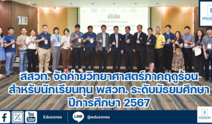นักเรียน สสวท. จัดค่ายวิทยาศาสตร์ภาคฤดูร้อน สำหรับนักเรียนทุน พสวท. ระดับมัธยมศึกษา ปีการศึกษา 2567 EZ Webmaster May 2, 2025 สถาบันส่งเสริมการสอนวิทยาศาสตร์และเทคโนโลยี (สสวท.) จัดค่ายวิทยาศาสตร์ภาคฤดูร้อนสำหรับนักเรียนทุน พสวท. ปีการศึกษา 2567 ในหัวข้อ “SEE THE SEA : ค้นหาทะเล ค้นหาตัวตน”ระหว่างวันที่ 28 เมษายน–3 พฤษภาคม 2568 ณ สิริน…