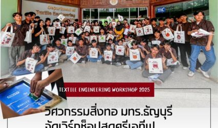 นักศึกษา วิศวกรรมสิ่งทอ มทร.ธัญบุรี จัดเวิร์กช็อปสุดครีเอทีฟ สร้างกระเป๋า DIY เปลี่ยนสี-กันน้ำได้ tui sakrapee May 2, 2025 เวิร์กช็อปแห่งปีจากภาควิชาวิศวกรรมสิ่งทอ มทร.ธัญบุรี กลับมาอีกครั้ง พร้อมกิจกรรมสุดสนุกให้นักศึกษาได้ทดลองเทคโนโลยีสิ่งทอล้ำยุค ด้วยการประดิษฐ์กระเป๋า DIY ที่ไม่ใช่แค่สวย แต่ยังเปลี่ยนสีได้และกันน้ำได้จริง! รศ.ดร.สรพงษ์ ภวสุปรีย์ คณบดีคณะวิศวกรรมศาสตร์ มหาวิทยาลัยเทคโนโลยีราชมงคลธัญบุรี (มทร.ธัญบุรี) เผยว่า ภาควิชาวิศวกรรมสิ่งทอ ได้จัดกิจกรรม…