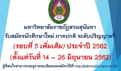 นักเรียน ม.ราชภัฏสวนสุนันทา รับสมัครนักศึกษาใหม่ ภาคปกติ ระดับปริญญาตรี (รอบที่ 5 เพิ่มเติม) ประจำปี 2562 EZ Webmaster June 24, 2019 มหาวิทยาลัยราชภัฏสวนสุนันทา รับสมัครนักศึกษาใหม่ ภาคปกติ ระดับปริญญาตรี (รอบที่ 5 เพิ่มเติม) ประจำปี 2562 (ตั้งแต่วันที่ 14 – 26 มิถุนายน 2562) #…