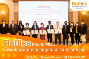 วิทยาลัยนานาชาติราฟเฟิลส์ ร่วมลงนาม MOU ขับเคลื่อนเครือข่ายบูรณาการมหาวิทยาลัย EZ Webmaster June 25, 2021 อาจารย์ภาณุพงศ์ พิทักษ์สังข์ อธิการบดีวิทยาลัยนานาชาติราฟเฟิลส์ ได้ลงนามบันทึกความเข้าใจว่าด้วยความร่วมมือโครงการขับเคลื่อนการดำเนินงานหน่วยปฏิบัติการส่วนหน้า กับ มหาวิทยาลัยราชภัฏธนบุรี, มหาวิทยาลัยหัวเฉียวเฉลิมพระเกียรติ, วิทยาลัยเซาธ์อีสท์บางกอก และสถาบันเทคโนโยีแห่งสุวรรณภูมิ ณ ห้องประชุมชั้น 1 อาคารอุตสาหกรรมบริการ(โรงแรม) ณ มหาวิทยาลัยราชภัฏธนบุรี สมุทรปราการ จากที่รัฐบาลมีนโยบาย ขับเคลื่อนไทยไปด้วยกัน ในระดับจังหวัด และโครงการมหาวิทยาลัยสู่ตำบล เพื่อพัฒนาและแก้ไขปัญหาได้โดยเร็วอย่างเป็นรูปธรรม และเพื่อสร้างเครือข่ายการทำงานงานร่วมกันระหว่างภาคีเครือข่ายประจำจังหวัดสมุทรปราการ โดยใช้องค์ความรู้จากงานวิจัยเทคโนโลยีและนวัตกรรม ร่วมกับการบูรณาการองค์ความรู้ที่หลากหลายของสถาบันอุดมศึกษา และหน่วยงานในสังกัดกระทรวงการอุดมศึกษา วิทยาศาสตร์ วิจัยและนวัตกรรม อาจารย์ภาณุพงษ์ พิทักษ์สังข์ อธิการบดีวิทยาลัยนานาชาติราฟเฟิลส์ กล่าวว่า สำหรับการทำ MOU ในวันนี้ที่ประกอบไปด้วย 5 มหาวิทยาลัยหลักที่อยู่ในเขตจังหวัดสมุทรปราการ สืบเนื่องมาจากสถานการณ์ Covid-19 ทำให้เกิดนโยบายในการฉีดวัคซีนให้แก่บุคลากรและนักศึกษา จึงทำให้เกิดการร่วมมือใน MOUครั้งแรก ต่อมาเราเล็งเห็นการพัฒนาวงการศึกษาในอนาคตข้างหน้า ซึ่งมีการแข่งขันทางด้านคุณภาพการศึกษา เทคโนโลยีที่สูงขึ้น เพราะฉะนั้นความสำคัญการร่วมมือกันของทั้ง 5 มหาวิทยาลัย คือการแบ่งปันสิ่งดีๆซึ่งกันและกัน เพื่อให้เราสามารถขับเคลื่อนการศึกษาให้เติบโตไปข้างหน้า รวมถึงเป็นพันธมิตรทางด้านต่างๆ ทั้ง ด้านสิ่งอำนวยความสดวก ด้านการพัฒนาบุคลากร ด้านงานวิจัย ด้านการประกวดต่างๆ และ ส่งเสริมให้ศิษย์ของวิทยาลัยเรา มีคุณภาพ สามารถตอบโจทย์ กับ ตลาดแรงงาได้ในอนาคต โดยดึงผู้ประกอบการเข้ามามีส่วนร่วมในการออกแบบหลักสูตรของพวกเรา ทั้งนี้ตามนโยบายรัฐบาล “ขับเคลื่อนไทยไปด้วยกัน” ซึ่งในส่วนจังหวัด สมุทรปราการเป็นพื้นที่แดงเข้มของการควบคุมโรคcovid-19 ในฐานะที่เราเป็นวิทยาลัยเอกชน ภายใต้หลักสูตรนานาชาติ เราจึงร่วมมือกับทางมหาวิทยาลัยทั้ง5 นี้ เพื่อพัฒนาส่งเสริมวงการการศึกษาให้เติบโตยิ่งขึ้นไปครับ เพื่อให้เป็นไปตามเจตนารมณ์ดังกล่าว วิทยาลัยนานาชาติราฟเฟิลส์ จึงเข้าร่วมการขับเคลื่อน ส่งเสริมและสนับสนุน องค์ความรู้ บุคลากร และเทคโนโลยีและนวัตกรรม เพื่อยกระดับ
