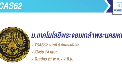EZ Webmaster June 22, 2021 #TCAS64 พระจอมเกล้าพระนครเหนือ เปิดรับสมัครนศ.ป.ตรี รอบที่ 4 (เพิ่มเติม) ตั้งแต่วันที่ 15-28 มิ.ย. 64 EZ Webmaster June 22, 2021 มหาวิทยาลัยเทคโนโลยีพระจอมเกล้าพระนครเหนือ เปิดรับสมัครคัดเลือกบุคคลเพื่อเข้าศึกษาต่อในโครงการรับตรง (รอบสมทบพิเศษ) สำหรับผู้มีวุฒิ ม.6 ปวช. และ ปวส. TCAS รอบที่ 4ระดับปริญญาตรี 4 ปี /5 ปี และหลักสูตรต่อเนื่อง/เทียบโอน ประจำปีการศึกษา 2564 (เพิ่มเติม) โดยจะเปิดรับสมัครตั้งแต่วันที่ 15-28 มิถุนายน 2564 คณะที่เปิดรับสมัคร -คณะครุศาสตร์อุตสาหกรรม -คณะวิทยาศาสตร์ประยุกต์ -คณะสถาปัตยกรรมและการออกแบบ -วิทยาลัยนานาชาติ -คณะเทคโนโลยีและการจัดการอุตสาหกรรม วิทยาเขตปราจีนบุรี -คณะอุตสาหกรรมเกษตร… Continue Reading
