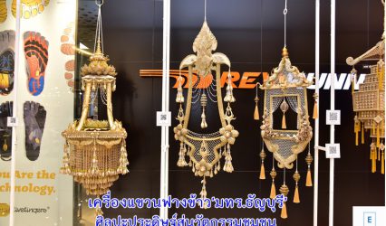 นักศึกษา เครื่องแขวนฟางข้าวมทร.ธัญบุรี ศิลปะประดิษฐ์สู่นวัตกรรมชุมชน tui sakrapee May 18, 2019 อีกหนึ่งงานผลงาน ศิลปะประดิษฐ์ “เครื่องแขวนไทยจากฟางข้าว” ผลงานจากนักศึกษาสาขาเทคโนโลยีงานประดิษฐ์สร้างสรรค์ คณะเทคโนโลยีคหกรรมศาสตร์ มหาวิทยาลัยเทคโนโลยีราชมงคล (มทร.) ธัญบุรี การสร้างสรรค์ศิลปะประดิษฐ์ สู่นวัตกรรมชุมชน อาจารย์วิจิตร สนหอม อาจารย์ประจำหลักสูตรศิลปะประดิษฐ์ในงานคหกรรมศาสตร์ คณะเทคโนโลยีคหกรรมศาสตร์ เล่าว่า เครื่องแขวนไทยเป็นศิลปะเชิงช่างดอกไม้ของคนไทยมาช้านาน มีการนำดอกไม้ของไทยที่มีกลิ่นหอมประดิษฐ์เป็นรูปแบบตามประเภทของเครื่องแขวนเช่น วิมาน…