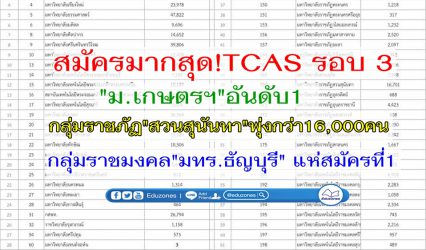 นักศึกษา สมัครมากสุด!TCAS รอบ 3″ม.เกษตรฯ”อันดับ1 – กลุ่มราชภัฏ”สวนสุนันทา”พุ่งกว่า16,000คน-กลุ่มราชมงคล”มทร.ธัญบุรี” แห่สมัครที่1 tui sakrapee May 3, 2019 ผศ.ดร.สมเดช รุ่งศรีสวัสดิ์ รองอธิการบดีฝ่ายวิชาการ มหาวิทยาลัยราชภัฏสวนสุนันทา เปิดเผยยอดสมัคร TCAS รอบ 3 รับนักศึกษาตรงร่วมกันทั่วประเทศ โดยใช้ผลคะแนน GAT/PAT และ/หรือ วิชาสามัญ 9 วิชา ประกาศเมื่อวันที่…