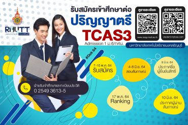 เปิดระบบแล้ว! มทร.ธัญบุรี รับเข้าศึกษาต่อปริญญาตรี TCAS3 Admission 1 สำหรับนักเรียนระดับ ม.6/กศน. tui sakrapee May 8, 2021 มหาวิทยาลัยเทคโนโลยีราชมงคลธัญบุรี (มทร.ธัญุรี) เปิดรับสมัครเข้าศึกษาต่อปริญญาตรี TCAS3 Admission 1 สำหรับนักเรียนระดับ ม.6/กศน. ปี 2564 เริ่ม 7 -15 พฤษภาคม 2564 รับสมัครที่ https://student.mytcas.com คุณสมบัติผู้สมัคร – ผู้สมัครที่จบการศึกษาวุฒิ ม. 6/กศน. จากสถานศึกษาทั่วประเทศ – นักเรียน/นักศึกษา ที่กำลังศึกษาอยู่ระดับ ม. 6 ภาคเรียนที่ 2 ปีการศึกษา 2563 ในสถานศึกษาทั่วประเทศ – นักเรียน/นักศึกษา ที่กำลังศึกษาอยู่ กศน. ภาคเรียนสุดท้าย ปีการศึกษา 2563 ในสถานศึกษาทั่วประเทศ –… Continue Reading