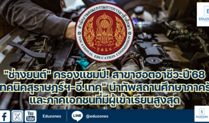 นักศึกษา “ช่างยนต์” ครองแชมป์! สาขาฮอตอาชีวะปี’68 – “เทคนิคสุราษฎร์ฯ-อี.เทค” นำทัพสถานศึกษาภาครัฐและภาคเอกชนที่มีผู้เข้าเรียนสูงสุด EZ Webmaster April 25, 2025 นายยศพล เวณุโกเศศ เลขาธิการคณะกรรมการการอาชีวศึกษา (กอศ.) เปิดเผยสถิติผู้สมัครเรียนอาชีวะปีการศึกษา 2568 ข้อมูล ณ วันที่ 20 เมษายน 2568 “ช่างยนต์” ยังครองใจวัยรุ่นด้วยยอดสมัคร 20,442 คน…