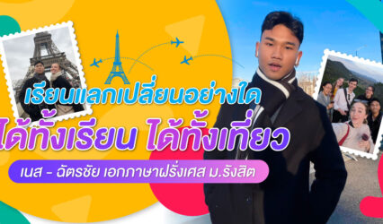 นักศึกษานักเรียน เรียนแลกเปลี่ยนอย่างใด ได้ทั้งเรียน ได้ทั้งเที่ยว เนส – ฉัตรชัย เอกภาษาฝรั่งเศส ม.รังสิต EZ Webmaster April 23, 2025 การเรียนรู้ภาษาไม่ใช่เพียงเรื่องไวยากรณ์หรือคำศัพท์เท่านั้น แต่ยังรวมถึงการเข้าใจวัฒนธรรมด้วย วิธีที่เราจะสามารถพัฒนาทักษะการสื่อสารข้ามวัฒนธรรมได้เป็นอย่างดีนั้น การได้เดินทางไปสัมผัสวัฒนธรรมและสังคมที่แตกต่าง เป็นอีกหนึ่งวิธีการเรียนรู้ที่เราจะสามารถใช้เป็นบทเรียนและประสบการณ์ชีวิตเพื่อเอื้อต่อการเรียนภาษาได้เป็นอย่างดี นายฉัตรชัย นำปานดี (เนส) นักศึกษาชั้นปีที่ 4 สาขาวิชาภาษาฝรั่งเศส วิทยาลัยศิลปศาสตร์ มหาวิทยาลัยรังสิต กล่าวว่า ตนเป็นนักศึกษาจากสาขาวิชาภาษาฝรั่งเศส สมัครเข้าร่วมโครงการแลกเปลี่ยนที่มหาวิทยาลัยเกิ่นเทอ…