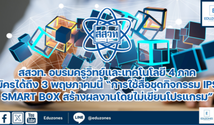 ครู-อาจารย์ สสวท. อบรมครูวิทย์และเทคโนโลยี 4 ภาค สมัครได้ถึง 3 พฤษภาคมนี้ “การใช้สื่อชุดกิจกรรม IPST SMART BOX สร้างผลงานโดยไม่เขียนโปรแกรม” EZ Webmaster April 23, 2025 สถาบันส่งเสริมการสอนวิทยาศาสตร์และเทคโนโลยี (สสวท.) เชิญครูที่สนใจสมัครเข้ารับการอบรมการใช้สื่อชุดกิจกรรม IPST SMART BOX “สร้างผลงานระบบอัตโนมัติโดยไม่ต้องเขียนโปรแกรม” โดยเป็นครูผู้สอนกลุ่มสาระวิทยาศาสตร์และเทคโนโลยี วิชาการออกแบบและเทคโนโลยี หรือวิทยาการคำนวณ ประถมศึกษาตอนปลายจนถึงมัธยมศึกษาทุกสังกัด ซึ่งหลังการอบรมแล้วคุณครูต้องนำไปจัดกิจกรรมในชั้นเรียนและส่งสรุปรายงานให้กับ สสวท. ลงทะเบียนสมัครฟรี ครูที่ไม่มีพื้นฐานก็สามารถสร้างผลงานที่ทำงานแบบอัตโนมัติได้ อบรม 4 จุดคือวันที่ 21 – 22 มิถุนายน 2568…