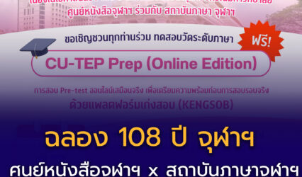 นักเรียน ฉลอง 108 ปี จุฬาฯ ทดสอบวัดระดับภาษา ฟรี! EZ Webmaster April 23, 2025 ฉลอง 108 ปี จุฬาฯ ทดสอบวัดระดับภาษา ฟรี!ศูนย์หนังสือจุฬาฯ x สถาบันภาษาจุฬาฯเปิดโอกาสให้บุคคลทั่วไป เข้าทำข้อสอบ CU-TEP Prep (Online Edition) แบบไม่มีค่าใช้จ่าย! . เปิดรับสมัครตั้งแต่วันนี้ –…