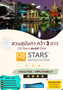 “สวนสุนันทา” ได้รับการประเมินมาตรฐานการศึกษา QS Stars ในระดับ 3 ดาว ประจำปี 2564 tui sakrapee April 19, 2021 “สวนสุนันทา” พัฒนาศักยภาพสู่ระดับสากลอีกขั้น หลังเข้ารับการประเมินมาตรฐานจาก QS Stars ซึ่งประกาศผลล่าสุด 2021 อยู่ในระดับ 3 ดาว ยืนยันถึงการเป็นมหาวิทยาลัยที่มีรู้จักกันดีระดับชาติ และได้รับการยอมรับในระดับสากล รวมทั้งเป็นสถาบันที่มีชื่อเสียงในด้านการวิจัย และบัณฑิตที่มีความสามารถจากการประเมินผลของนายจ้าง มหาวิทยาลัยราชภัฏสวนสุนันทา ได้รับการประเมินมาตรฐานการศึกษา จาก QS Stars ประจำปี 2564 ในระดับ 3 ดาว ประกาศผลเมื่อวันที่ 23 มีนาคม 2021 ซึ่งมีอายุการรับรองตั้งแต่วันที่ 23 มีนาคม 2021 ถึงวันที่ 23 มีนาคม 2024 ได้รับการประเมินภาพรวม ทั้งหมด 8 ด้าน คือ… Continue Reading