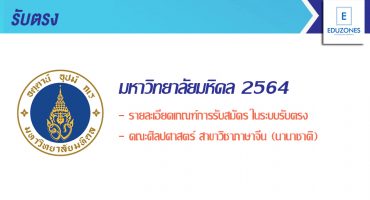 #รับตรง64 คณะศิลปศาสตร์ สาขาวิชาภาษาจีน ม.มหิดล (นานาชาติ) เปิดรับสมัครนศ.ป.ตรี ตั้งแต่วันที่ 21 มิ.ย. – 9 ก.ค. 64 EZ Webmaster June 8, 2021 คณะศิลปศาสตร์ ม.มหิดล เปิดรับสมัครคัดเลือกบุคคลเพื่อเข้าศึกษาต่อในระดับปริญญาตรี สาขาวิชาภาษาจีน (นานาชาติ) ประจำปีการศึกษา 2564 โดยจะเปิดรับสมัครตั้งแต่วันที่ 21 มิถุนายน – 9 กรกฎาคม 2564 กำหนดการ -เปิดรับสมัครตั้งแต่วันที่ 21 มิถุนายน – 9 กรกฎาคม 2564 -ประกาศรายชื่อผู้มีสิทธิ์สอบสัมภาษณ์ วันที่ กรกฎาคม 2564 -สอบสัมภาษณ์ วันที่ 14 กรกฎาคม 2564 -ประกาศรายชื่อผู้มีสิทธิ์เข้าศึกษา วันที่ 16 กรกฎาคม 2564 คุณสมบัติของผู้สมบัติ -เป็นผู้ที่สำเร็จการศึกษาระดับชั้นมัธยมศึกษาปีที่ 6 หรือเทียบเท่า… Continue Reading
