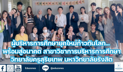 ครู-อาจารย์ ผู้บริหารการศึกษายุคใหม่ก้าวทันโลก… พร้อมสู่อนาคต สาขาวิชาการบริหารการศึกษา วิทยาลัยครูสุริยเทพ มหาวิทยาลัยรังสิต EZ Webmaster April 21, 2025 ในยุคที่โลกเปลี่ยนแปลงรวดเร็ว เทคโนโลยีเข้ามามีบทบาทสำคัญในทุกแง่มุมของชีวิต แม้กระทั่งการศึกษาเองก็ไม่ใช่ข้อยกเว้น ผู้บริหารการศึกษายุคใหม่จึงต้องปรับตัวให้เข้ากับการเปลี่ยนแปลง พัฒนาทักษะ และความรู้ใหม่ๆ อยู่เสมอ วิทยาลัยครูสุริยเทพ มหาวิทยาลัยรังสิต เล็งเห็นถึงความสำคัญนี้ จึงได้จัดทำหลักสูตร สาขาวิชาการบริหารการศึกษา ที่มุ่งพัฒนาผู้บริหารการศึกษามืออาชีพยุคใหม่ ให้พร้อมรับมือกับทุกโจทย์ความท้าทาย หลักสูตรฯ ของเรา…