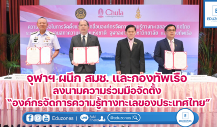 กิจกรรม จุฬาฯ ผนึก สมช. และกองทัพเรือ ลงนามความร่วมมือจัดตั้ง “องค์กรจัดการความรู้ทางทะเลของประเทศไทย” EZ Webmaster April 21, 2025 จุฬาลงกรณ์มหาวิทยาลัย ร่วมกับสำนักงานสภาความมั่นคงแห่งชาติ (สมช.) และกองทัพเรือ (ทร.) จัดพิธีลงนามบันทึกข้อตกลงความร่วมมือ (MOU) ว่าด้วย “การจัดตั้งและขับเคลื่อนองค์กรจัดการความรู้ทางทะเลของประเทศไทย” เพื่อวางรากฐานในการเป็นศูนย์กลางองค์ความรู้ทางทะเลระดับประเทศ เมื่อวันศุกร์ที่ 11 เมษายน 2568 ณ ห้องประชุม 105…
