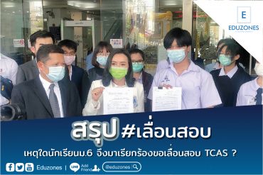 EZ Webmaster March 17, 2021 สรุป #เลื่อนสอบ เหตุใดนักเรียนม.6 จึงมาเรียกร้องขอเลื่อนสอบ TCAS ? EZ Webmaster March 17, 2021 สรุป #เลื่อนสอบ เหตุใดนักเรียนม.6 จึงมาเรียกร้องขอเลื่อนสอบ T-CAS ? การสอบเข้ามหาวิทยาลัย เป็นเรื่องที่สำคัญอย่างยิ่งในอนาคต เพราะจะเป็นตัวชี้วัดว่าในอนาคตของเราจะเป็นไปในทิศทางไหน ทั้งเรื่องการงานและการเงินก็ขึ้นอยู่กับอาชีพในอนาคตเช่นเดียวกัน ซึ่งในปีนี้ มีการแพร่ระบาดของโรค COVID-19 เข้ามาเปลี่ยนแปลงกำหนดการต่าง ๆ ทำให้ตารางชีวิตของใครหลายคนสับสนวุ่นวายไปหมด เช่นเดียวกับแวดวงการศึกษา ที่ในตอนนี้มีกระแส #เลื่อนสอบ และ #เห็นหัวdek64 ที่เหล่านักเรียนออกมาเรียกร้องให้เลื่อนการสอบ แล้วทำไมต้องเด็ก ๆ จึงออกมาเรียกร้องให้เลื่อนสอบ แล้วจะมีการเลื่อนสอบหรือไม่ ผลกระทบจะเป็นอย่างไร ไปดูกันเลยค่ะ มีการสอบ 25-35 วิชาใน 3… Continue Reading