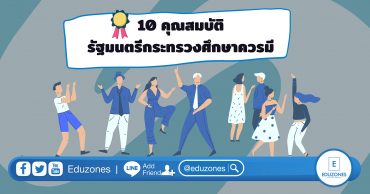 10 คุณสมบัติที่รัฐมนตรีกระทรวงศึกษาควรมี EZ Webmaster March 4, 2021 ชาว Eduzones ให้ความเห็น นี่แหละ! คุณสมบัติที่ควรมีในรัฐมนตรีกระทรวงศึกษาธิการคนต่อไป จากการตั้งกระทู้บนเพจ Wiriyah Eduzones ของท่าน ดร.วิริยะ เนื้อความว่า “รมต. กระทรวงศึกษาธิการ ควรมีคุณสมบัติอะไร มีความคิดอย่างไร” ทำให้มีผู้คนมาแสดงความคิดเห็นกันอย่างล้นหลาม ซึ่งทาง Eduzones จึงได้นำความคิดเห็นทั้งหมด 309 รายการ มาหาข้อสรุปคุณสมบัติของ รมต. กระทรวงศึกษาธิการที่ควรมี 10 คุณสมบัติ ดังนี้ 10 คุณสมบัติที่รัฐมนตรีกระทรวงศึกษาควรมี เป็นผู้ที่อยู่ในวงการการศึกษา รัฐมนตรีกระทรวงศึกษาธิการ แน่นอนว่าเกี่ยวกับการศึกษาอยู่แล้ว เพราะฉะนั้นผู้ที่จะมาเป็นผู้บริหารด้านนี้ ก็ควรมีความรู้ความเข้าใจในด้านการศึกษา ไม่ว่าจะเคยเป็นครู อาจารย์ หรือตำแหน่งอื่น ๆ ที่คลุกคลีกับวงการการศึกษา จะทำให้บุคคลเหล่านั้นเห็นปัญหาของระบบการศึกษา จึงจะสามารถแก้ไขปัญหาได้อย่างถูกต้องและมองภาพสำหรับการศึกษาให้มีการพัฒนาได้อย่างชัดเจน… Continue Reading