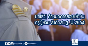 EZ Webmaster February 24, 2021 มาแล้ว! กำหนดการสอบแข่งขันครูผู้ช่วย สังกัด สพฐ. ปี 2564 EZ Webmaster February 24, 2021 เมื่อวันที่ 23 กุมภาพันธ์ 2564 ทางสำนักงานคณะกรรมการการศึกษาขั้นพื้นฐาน (สพฐ.) ได้ส่งหนังสือถึงผู้อำนวยการสำนักงานเขตพื้นที่การศึกษา เรื่อง การสอบแข่งขันฯ ตำแหน่งครูผู้ช่วย สังกัดสำนักงานคณะกรรมการการศึกษาขั้นพื้นฐาน ปี พ.ศ. 2564 ซึ่งขณะนี้ทาง สพฐ.ได้กำหนดการสอบแข่งขันเพื่อบรรจุและแต่งตั้งบุคคลเข้ารับราชการเป็นข้าราชการครูและบุคลากรทางการศึกษา ตำแหน่งครูผู้ช่วย ตามหลักเกณฑ์และวิธีการที่ ก.ค.ศ. กําหนด ตามหนังสือสํานักงาน ก.ค.ศ. ที่ ศธ ๐๒๐๖.๖/ว ๑๔ ลงวันที่ ๒๒ พฤษภาคม ๒๕๖๓ แล้วโดยมีกำหนดการ ดังนี้… Continue Reading
