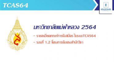 #TCAS64 ม.แม่ฟ้าหลวง เปิดรับสมัครนศ.ป.ตรี รอบที่ 1.2 โครงการรับตรงสำนักวิชา ตั้งแต่วันที่ 5-14 ก.พ. 64 EZ Webmaster February 7, 2021 มหาวิทยาลัยแม่ฟ้าหลวง เปิดรับสมัครคัดเลือกบุคคลเพื่อเข้าศึกษาต่อในระดับปริญญาตรี รอบที่ 1.2 Portfolio โครงการรับตรงสำนักวิชา โดยจะเปิดรับสมัครตั้งแต่วันที่ 5-14 กุมภาพันธ์ 2564 สาขาที่เปิดรับสมัคร -34 สาขา -ภาษาอังกฤษ -จีนศึกษา -ภาษาจีนธุรกิจ -ภาษาและวัฒนธรรมจีน -การพัฒนาระหว่างประเทศ -การบัญชี -เศรษฐศาสตร์ -บริหารธุรกิจ -การจัดการการท่องเที่ยว -การจัดการอุตสาหกรรมการบริการ -การจัดการธุรกิจการบิน-งานบริการทางการบิน -นิติศาสตร์ -เทคโนโลยีดิจิตอลเพื่อนวัตกรรมทางธุรกิจ -วิทยาศาสตร์การกีฬาและสุขภาพ -อนามัยสิ่งแวดล้อม -การจัดการโลจิสติกส์และโซ่อุปทาน -การจัดการธุรกิจการบิน-ธุรกิจโลจิสติกส์ทางการบินระหว่างประเทศ -การจัดการธุรกิจการบิน-การปฏิบัติการทางการบิน -เทคโนโลยีหลังการเก็บเกี่ยวและโลจิสติกส์ -เทคโนโลยีอย่างการเก็บเกี่ยวและโลจิสติกส์-ควบ 2 ปริญญา -วิศวกรรมซอฟต์แวร์ -เทคโนโลยีมัลติมีเดียและการสร้างภาพเคลื่อนไหว -เคมีประยุกต์ -เทคโนโลยีชีวภาพ-วิทยาศาสตร์ชีวภาพ -วิทยาศาสตร์และเทคโนโลยีการอาหาร -วิทยาศาสตร์เครื่องสําอาง… Continue Reading