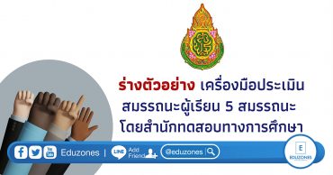 ร่างตัวอย่าง เครื่องมือประเมินสมรรถนะผู้เรียน 5 สมรรถนะ โดยสำนักทดสอบทางการศึกษา EZ Webmaster February 1, 2021 ร่างตัวอย่าง เครื่องมือประเมินสมรรถนะผู้เรียน 5 สมรรถนะ โดยสำนักทดสอบทางการศึกษา สำนักงานคณะกรรมการการศึกษาขั้นพื้นฐาน โดยสำนักทดสอบทางการศึกษาได้วิเคราะห์กรอบโครงสร้างจากนิยามสมรรถนะหลัก 5 สมรรถนะ และระดับความสามารถของผู้เรียนตามร่างหลักสูตรฐานสมรรถนะ และดำเนินการร่างเครื่องมือประเมินสมรรถนะขึ้นเพื่อจัดทำเป็นตัวอย่างเครื่องมือประเมินสมรรถนะ สามารถนำไปใช้ในการวัดและประเมินผลผู้เรียนได้ จึงได้ทำการสำรวจความคิดเห็นของผู้ที่มีส่วนเกี่ยวข้อง จะได้นำข้อมูลความคิดเห็นไปใช้พัฒนาตัวอย่างเครื่องมือประเมินสมรรถนะต่อไป ร่างตัวอย่าง เครื่องมือประเมินสมรรถนะผู้เรียน 5 สมรรถนะ โดยสำนักทดสอบทางการศึกษา · ดาวน์โหลดร่างเครื่องมือประเมินสมรรถนะการจัดการตนเอง – เครื่องมือประเมิน ช่วงชั้นที่ 1 – เครื่องมือประเมิน ช่วงชั้นที่ 2 – เครื่องมือประเมิน ช่วงชั้นที่ 3 – เครื่องมือประเมิน ช่วงชั้นที่ 4 · ดาวน์โหลดร่างเครื่องมือประเมินสมรรถนะการสื่อสาร – เครื่องมือประเมิน… Continue Reading