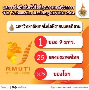 มทร.อีสาน ครองแชมป์ อันดับ 1 กลุ่มมหาวิทยาลัยเทคโนโลยีราชมงคล ต่อเนื่องเป็นสมัยที่ 2 EZ Webmaster February 1, 2021 ผู้ช่วยศาสตราจารย์ ดร.วิโรจน์ ลิ้มไขแสง อธิการบดีมหาวิทยาลัยเทคโนโลยีราชมงคลอีสาน (มทร.อีสาน) เปิดเผยว่า ศาสตราจารย์พิเศษ ดร.สุรเกียรติ์ เสถียรไทย นายกสภา มทร.อีสาน ได้ให้นโยบายเกี่ยวกับการให้ความสำคัญด้านการเผยแพร่ผลงานทางวิชาการสู่ระบบออนไลน์ทั้งในประเทศและต่างประเทศ ทำให้ในวันนี้ มทร.อีสาน ครองแชมป์อันดับ 1 ในกลุ่มมหาวิทยาลัยราชมงคลจากทั้ง 9 แห่ง ติดต่อกัน 2 ปีซ้อน จากการจัดอันดับเว็บไซต์คุณภาพทางวิชาการทั่วโลก “Webometrics Ranking of World Universities” ในเดือนมกราคม 2564 ซึ่งจัดทำโดย Cybermetrics Lab กลุ่มวิจัยของสภาวิจัยแห่งชาติ ประเทศสเปน ผ่านทางเว็บไซต์ www.webometrics.info เพื่อเป็นการแสดงถึงคุณภาพทางการศึกษาและคุณภาพทางวิชาการของมหาวิทยาลัย ทั้งในด้านการนำเสนอผลงานทางวิชาการที่มีการเผยแพร่ทางอินเทอร์เน็ตนอกเหนือจากผลงานที่มีการตีพิมพ์ลงในวารสารวิชาการหรืออื่น ๆ รวมถึงการประชาสัมพันธ์ข่าวสารหรือกิจกรรมต่าง ๆ… Continue Reading