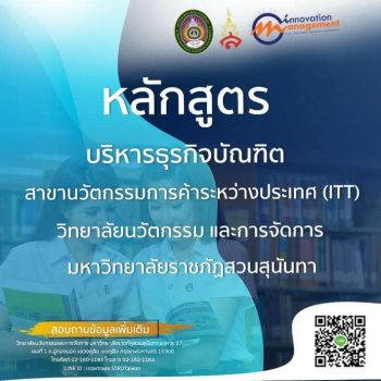 tui sakrapee January 29, 2021 เรียนจบได้ 2 ภาษา ควบปริญญา 2 ใบ! สาขานวัตกรรมการค้าระหว่างประเทศ(ITT) สวนสุนันทา เปิดรับนักศึกษาใหม่ จบสายไหนก็เรียนได้ รับส่วนลดค่าเทอมทันที 50 % tui sakrapee January 29, 2021 หลักสูตรบริหารธุรกิจบัณฑิต สาขานวัตกรรมการค้าระหว่างประเทศ(ITT) วิทยาลัยนวัตกรรมและการจัดการ มหาวิทยาลัยราชภัฏสวนสุนันทา เปิดให้เรียนรู้การทำธุรกิจนำเข้า – ส่งออกอย่างนักธุรกิจมืออาชีพ กับหลักสูตร ITT มีให้เลือกทั้งหลักสูตรเรียนในไทย และไทย-ไต้หวัน* (เรียนจบมาได้ 2 ภาษา แถมยังได้ใบปริญญา 2 ใบ*) ข้อมูลหลักสูตรบริหารธุรกิจบัณฑิต สาขานวัตกรรมการค้าระหว่างประเทศ(ITT) 1.ITT เรียนไทย 2.ITT DUAL DEGREE เรียนไทย – ไต้หวัน สอนโดยอาจารย์ผู้เชี่ยวชาญ ทั้งจากมหาลัยราชภัฏสวนสุนันทาและ Chihlee University of… Continue Reading