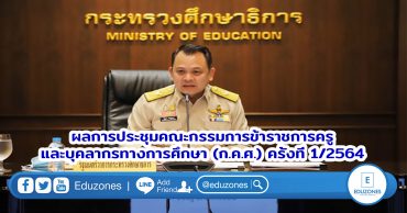 หลักเกณฑ์ฯ ประเมินตำแหน่งและวิทยฐานะข้าราชการครู EZ Webmaster January 26, 2021 ผลการประชุมคณะกรรมการข้าราชการครูและบุคลากรทางการศึกษา (ก.ค.ศ.) ครั้งที่ 1/2564 ผลการประชุมคณะกรรมการข้าราชการครูและบุคลากรทางการศึกษา (ก.ค.ศ.) ครั้งที่ 1/2564 ในวันจันทร์ที่ 25 มกราคม 2564 โดยมีนายณัฏฐพล ทีปสุวรรณ รัฐมนตรีว่าการกระทรวงศึกษาธิการ เป็นประธาน ซึ่งที่ประชุมได้มีการพิจารณาเรื่องที่เกี่ยวข้องกับการบริหารงานบุคคลของข้าราชการครูและบุคลากรทางการศึกษาที่สำคัญ ดังนี้ เห็นชอบให้สำนักงานคณะกรรมการการศึกษาขั้นพื้นฐาน (สพฐ.) ดำเนินการบริหารอัตรากำลังข้าราชการครูและบุคลากรทางการศึกษาในสถานศึกษา สืบเนื่องจาก ก.ค.ศ. ได้มีมติเห็นชอบเกณฑ์อัตรากำลังข้าราชการครูและบุคลากรทางการศึกษา สังกัด สพฐ. (ว 23/2563) และได้แจ้งเวียนให้กับส่วนราชการทราบและถือปฏิบัติ พร้อมทั้งแจ้ง คปร. เพื่อทราบแล้วนั้น ต่อมาสพฐ. ได้มีหนังสือขอชะลอการบังคับใช้เกณฑ์อัตรากำลังฯ มายัง ก.ค.ศ. โดยขอเริ่มบังคับใช้ ในภาคเรียนที่ 1 ปีการศึกษา 2564… Continue Reading
