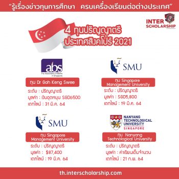 รวม 4 ทุนเรียนต่อระดับป.ตรีที่สิงคโปร์ ปี 2021 EZ Webmaster January 17, 2021 สำหรับผู้ที่สนใจไปศึกษาต่อที่ประเทศสิงคโปร์ วันนี้เราได้รวบรวมทุนการศึกษาสำหรับการไปเรียนต่อในระดับปริญญาตรีที่ประเทศสิงคโปร์ ประจำปีการศึกษา 2021 มาฝากกันค่ะ 1.ทุน Dr Goh Keng Swee Association of Banks ในสิงคโปร์เสนอให้ ทุน Dr Goh Keng Swee Scholarships for Asia Pacific Students in Singapore, 2021 ระดับปริญญาตรีสำหรับนักเรียนชั้นยอดจากชาติต่าง ๆ ในภูมิภาคที่กำหนด รวมทั้งไทย ทุนนี้ได้รับการยกเว้นค่าเรียน และค่าธรรมเนียมต่าง ๆ โดยจะเปิดรับใบสมัครถึงวันที่ 31 มีนาคม 2021 รายละเอียดคลิก >>> http://th.interscholarship.com/somkiat2013/4380… Continue Reading