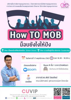 CUVIP เรียนออนไลน์ “ม็อบยังไงให้ปัง” tui sakrapee November 12, 2020 ศูนย์การศึกษาทั่วไป จุฬาฯ ขอเชิญนิสิตจุฬาฯ บุคลากรจุฬาฯ นิสิตเก่า และผู้สนใจเรียนออนไลน์ผ่าน Zoom หัวข้อ “How TO MOB ม็อบยังไงให้ปัง” โดย อ.ดร.พัชร์ นิยมศิลป คณะนิติศาสตร์ จุฬาฯ ในวันอังคารที่ 17 พฤศจิกายน 2563 เวลา 16.30 – 18.30 น. เนื้อหาประกอบด้วย หลักพื้นฐานเกี่ยวกับเสรีภาพในการชุมนุม การวางแผนกำหนดยุทธศาสตร์ กรอบเนื้อหา เป้าหมาย และวิธีการ ข้อควรพิจารณาเมื่อจัดการชุมนุมสาธารณะ ผู้สนใจที่เป็นนิสิต บุคลากร นิสิตเก่าจุฬาฯ สามารถสมัครได้ที่ https://bit.ly/3n4ezRW สำหรับบุคคลทั่วไปสมัครได้ที่ https://bit.ly/35PUrw2 หรือสามารถสแกนคิวอาร์โค้ดได้ที่ด้านล่างโปสเตอร์ประชาสัมพันธ์ สอบถามรายละเอียดเพิ่มเติมได้ที่ศูนย์การศึกษาทั่วไป… Continue Reading