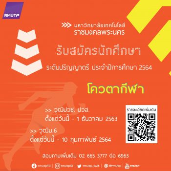 ราชมงคลพระนคร เปิดรั้วโควตารับอีสปอร์ต – ศิลปะการแสดง กว่า 200 ที่นั่ง EZ Webmaster November 11, 2020 ผศ.สหรัตน์ วงษ์ศรีษะ รักษาราชการแทนอธิการบดี มหาวิทยาลัยเทคโนโลยีราชมงคลพระนคร เปิดเผยว่า มหาวิทยาลัยเทคโนโลยีราชมงคลพระนคร เปิดรับนักเรียนที่มีความสามารถพิเศษด้านกีฬา ประจำปีการศึกษา 2564 ได้แก่ วอลเลย์บอล วอลเลย์บอลชายหาด ฟุตบอล ฟุตซอล ฟุตวอลเลย์ บาสเกตบอล เซปักตะกร้อ เปตอง มวยสากลสมัครเล่น ปันจักสีลัต คาราเต้โด เทควันโด แบดมินตัน เทเบิลเทนนิส ลีลาศ กรีฑา เทนนิส ว่ายน้ำ หมากรุก หมากล้อม ตะกร้อลอดห่วง จักรยาน และอีสปอร์ต เป็นต้น และด้านศิลปะการแสดง ผ่านระบบโควตาพิเศษ จำนวน 220 คน เพื่อเข้าศึกษาต่อระดับปริญญาตรี 9 คณะ… Continue Reading