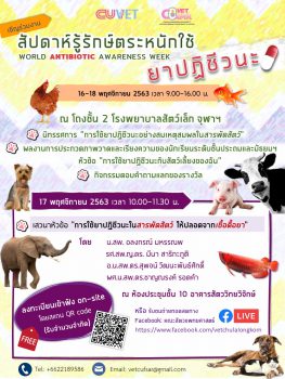 สัตวแพทยศาสตร์ จุฬาฯ ชวนร่วมงานสัปดาห์รู้รักษ์ตระหนักใช้ยาปฏิชีวนะ tui sakrapee November 4, 2020 คณะสัตวแพทยศาสตร์ จุฬาลงกรณ์มหาวิทยาลัย ขอเชิญร่วมงานสัปดาห์รู้รักษ์ตระหนักใช้ยาปฏิชีวนะ (work Antibiotic Awareness Week) ระหว่างวันที่ 16 – 18 พฤศจิกายน 2563 ณ โถงชั้น 2 โรงพยาบาลสัตว์เล็ก คณะสัตวแพทยศาสตร์ พบกับนิทรรศการ การใช้ยาปฏิชีวนะอย่างสมเหตุสมผลในสารพัดสัตว์ การประกาศผลการประกวดภาพวาด และเรียงความของนักเรียนระดับชั้นประถมและมัธยมศึกษา “การใช้ยาปฏิชีวนะกับสัตว์เลี้ยงของฉัน” และกิจกรรมตอบคำถามแลกของรางวัล นอกจากนี้ยังมีการเสวนาในหัวข้อ “การใช้ยาปฏิชีวนะในสารพัดสัตว์ ให้ปลอดจากเชื้อดื้อยา” ในวันอังคารที่ 17 พฤศจิกายน 2563 เวลา 10.00 – 11.30 น. ณ ห้องประชุมชั้น 10 อาคารสัตววิทยวิจักษ์ โดย น.สพ.… Continue Reading
