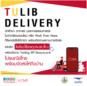 อยู่ที่ไหนก็ได้อ่าน!! หอสมุด มธ. เปิดบริการ TULIB DELIVERY จัดส่งหนังสือให้นักศึกษาถึงบ้านด้วย ไปรษณีย์ไทย EZ Webmaster January 7, 2021 ถึงต้องเรียนออนไลน์ก็ยังได้ความรู้แบบอันลิมิต!!! ในช่วงที่ต้องทำการเรียนการสอนออนไลน์ เนื่องจากการแพร่ระบาดของไวรัสโควิด – 19 น้องๆ นักศึกษาอาจจะต้องเจอกับปัญหาที่ว่า จำเป็นต้องใช้หนังสือสำหรับประกอบการเรียน หรือต้องใช้อ่านเพื่อเตรียมสอบ หอสมุดแห่งมหาวิทยาลัยธรรมศาสตร์ จึงพร้อมอำนวยความสะดวกด้วยบริการ “TULIB DELIVERY” ส่งหนังสือให้อ่านที่บ้านด้วยบริการของไปรษณีย์ไทย ซึ่งไม่ว่าคุณจะอยู่ที่บ้าน ร้านกาแฟ หรือนั่งเรียนออนไลน์ที่ไหนๆ ก็สามารถเลือกหนังสือเล่มที่อยากอ่าน รวมถึงงานวิจัยสารนิพนธ์ ฯลฯ จากห้องสมุดได้ทุกเล่ม โดยไปรษณีย์ไทยพร้อมส่งให้ถึงมือ สำหรับหอสมุดที่เปิดให้บริการเลือกและยืมอ่านผ่านช่องทาง TULIB DELIVERY และจัดส่งทุกวันจันทร์-วันศุกร์ ได้แก่ หอสมุดปรีดี พนมยงค์ หอสมุดป๋วย อึ๊งภากรณ์ ห้องสมุดสัญญา ธรรมศักดิ์ (คณะนิติศาสตร์) ห้องสมุดนงเยาว์ ชัยเสรี (ห้องสมุดกลุ่มแพทยศาสตร์) ห้องสมุดป๋วย อึ๊งภากรณ์ (คณะเศรษฐศาสตร์) และห้องสมุดบุญชู ตรีทอง ส่วนห้องสมุด ศ.สังเวียน อินทรวิชัย… Continue Reading