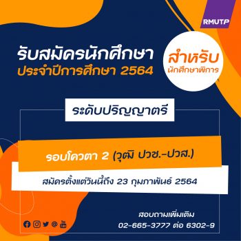 EZ Webmaster January 6, 2021 ราชมงคลพระนคร หนุนการศึกษาที่เท่าเทียมในสังคม เปิดโควตารับนศ.ผู้พิการ ต่อป.ตรี EZ Webmaster January 6, 2021 ผศ.สหรัตน์ วงษ์ศรีษะ รักษาราชการแทนอธิการบดีมหาวิทยาลัยเทคโนโลยีราชมงคลพระนคร (มทร.พระนคร) เปิดเผยว่า จากสถิติรายงานข้อมูลสถานการณ์ด้านคนพิการในประเทศไทย ประจำปี 2563 ของกรมส่งเสริมและพัฒนาคุณภาพชีวิตคนพิการ กระทรวงการพัฒนาสังคมและความมั่นคงของมนุษย์ พบว่า คนพิการเข้าถึงการศึกษาได้น้อยลงตามระดับการศึกษาที่สูงขึ้น ซึ่งสาเหตุส่วนใหญ่มาจากปัจจัยแวดล้อมในครอบครัว และสถานะทางการเงินที่มีส่วนทำให้คนกลุ่มนี้ขาดโอกาสเข้าถึงการศึกษา มทร.พระนคร มีความมุ่งหมายสนับสนุนให้เด็กทุกคน เข้าถึงการศึกษาที่มีคุณภาพ โดยเฉพาะผู้พิการที่มีความสามารถในการเรียนรู้ให้ได้รับสิทธิในการเข้าระบบการศึกษาระดับมหาวิทยาลัยได้อย่างเท่าเทียมกับคนทั่วไป จึงได้เปิดรับสมัครเข้าศึกษาต่อระดับปริญญาตรี (สำหรับนักศึกษาพิการ) ประเภทโควตา รอบที่2 ประจำปีการศึกษา 2564 จำนวน 30 คน ได้แก่ ผู้ที่มีความบกพร่องทางการมองเห็น บกพร่องทางการได้ยิน บกพร่องทางการเคลื่อนไหว และออทิสติกที่สามารถช่วยเหลือตนเองในชีวิตประจำวันได้ โดยผู้สมัครต้องสำเร็จหรือกำลังศึกษาอยู่ในคุณวุฒิประกาศนียบัตรวิชาชีพ (ปวช.) และคุณวุฒิประกาศนียบัตรวิชาชีพชั้นสูง (ปวส.) มีผลการเรียนเฉลี่ยสะสม 2.00 ขึ้นไป หรือตามที่คณะกำหนด… Continue Reading