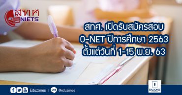 EZ Webmaster November 1, 2020 สทศ. เปิดรับสมัครสอบ O-NET ปีการศึกษา 2563 ตั้งแต่วันที่ 1-15 พ.ย. 63 EZ Webmaster November 1, 2020 สถาบันทดสอบการศึกษาแห่งชาติ (องค์การมหาชน) หรือ สทศ. เปิดระบบรับสมัครสอบ O-NET ม.6 ปีการศึกษา 2563 สำหรับนักเรียนเทียบเท่า ม.6 ปีการศึกษา 2563 ตั้งแต่วันที่ 1-15 พฤศจิกายน 2563 สำหรับนักเรียนเทียบเท่า ม.6 ปีการศึกษา 2563 หมายถึง นักเรียนในสังกัดสำนักงานคณะกรรมการการอาชีวศึกษา ,โรงเรียนสังกัด กศน. ,โรงเรียนพณิชยการ เป็นต้น และนักเรียนที่กำลังศึกษาระดับชั้นมัธยมศึกษาปีที่ 6 ปีการศึกษา 2563… Continue Reading