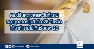 EZ Webmaster January 4, 2021 ศธ.ปรับลดเวลาและวันทำงานของบุคลากรในสังกัด 28 จังหวัด ให้มาทำงานไม่เกินร้อยละ 25 EZ Webmaster January 4, 2021 เมื่อวันที่ 3 มกราคม 2564 ที่ผ่านมา ปลัดกระทรวงศึกษาธิการ นายสุภัทร จำปาทอง ได้ลงนามประกาศกระทรวงศึกษาธิการ เรื่อง การป้องกันและควบคุมสถานการณ์การแพร่ระบาดของโรคติดเชื้อไวรัสโคโรนา 2019 (COVID-19) โดยการปรับลดเวลาและวันทำงานของบุคลากรในสังกัดและในกำกับของกระทรวงศึกษาธิการ โดยมีเนื้อหา ดังนี้ กระทรวงศึกษาธิการโดยรัฐมนตรีว่าการกระทรวงศึกษาธิการกำหนดมาตรการป้องกันและควบคุมสถานการณ์การแพร่ระบาดของโรคติดเชื้อไวรัสโคโรน่า 2019 (Covid-19) โดยการปรับลดเวลาและวันทำงานของบุคลากรในสังกัดและในกำกับของกระทรวงศึกษาธิการในเขตจังหวัดทั้ง 28 จังหวัด ด้วยมาตรการดังนี้ 1.ให้ผู้บริหารของแต่ละหน่วยงานในสังกัดและในกำกับของกระทรวงศึกษาธิการที่มีสถานที่ทำงานในเขต 28 จังหวัด มอบหมายให้บุคลากรในสังกัดปฏิบัติงาน ณ ที่พักตามความเหมาะสมและส่งเสริมให้ใช้ระบบอินเทอร์เน็ตในการปฏิบัติงานทุกชนิด ให้เปิดเครื่องมือสื่อสารเพื่อให้สามารถติดต่อได้ตลอดเวลา… Continue Reading