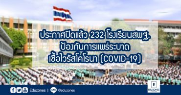 EZ Webmaster December 22, 2020 ประกาศปิดแล้ว 232 โรงเรียนสพฐ. ป้องกันการแพร่ระบาดเชื้อไวรัสโคโรนา (COVID-19) EZ Webmaster December 22, 2020 เมื่อวันที่ 22 ธันวาคม 2563 ที่ผ่านมา ทางแฟนเพจ ประชาสัมพันธ์ สพฐ. ได้เผยแพร่ รายงานการปิดสถานศึกษา เนื่องจากสถานการณ์โรคติดเชื้อไวรัสโคโรนา 2019 (COVID-19) โดยจากรายงานพบว่ามีโรงเรียนในเขตพื้นที่การศึกษาที่ปิดทำการ จำนวน 232 โรงเรียน (ข้อมูล ณ วันที่ 22 ธันวาคม 2563 เวลา 15.00 น.) ดังนี้ สำนักงานเขตพื้นที่การศึกษาประถมศึกษา (สพป.) 5 เขต… Continue Reading