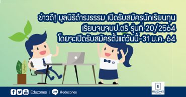 EZ Webmaster December 17, 2020 ข่าวดี! มูลนิธิดำรงธรรม เปิดรับสมัครนักเรียนทุน เรียนจนจบป.ตรี รุ่นที่ 20 โดยจะเปิดรับสมัครตั้งแต่วันนี้-31 ม.ค. 64 EZ Webmaster December 17, 2020 มูลนิธิดำรงชัยธรรม เปิดรับสมัครนักเรียนที่กำลังศึกษาอยู่ในระดับชั้นมัธยมศึกษาปีที่ 6 หรือ ปวช.3 อายุไม่เกิน 21 ปีสมัครโครงการทุน “สร้างคน สร้างบัณฑิต” รุ่นที่ 20/2564 เพื่อรับทุนการศึกษาใยระดับปริญญาตรี (ทุนต่อเนื่อง แบบครบวงจร) จำนวน 20 ทุน โดยจะเปิดรับสมัครตั้งแต่ 15 ธันวาคม 2563-31 มกราคม 2564 คุณสมบัติผู้สมัครขอรับทุนการศึกษา -เป็นนักเรียนที่กำลังศึกษาอยู่ในปีการศึกษา 2563 ชั้นมัธยมศึกษาปีที่ 6 หรือ ปวช.3… Continue Reading