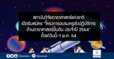 สถาบันวิจัยดาราศาสตร์แห่งชาติ เปิดรับสมัคร “โครงการอบรมครูเชิงปฏิบัติการด้านดาราศาสตร์ขั้นต้น ประจำปี 2564” ตั้งแต่วันนี้-1 พ.ค. 64 EZ Webmaster December 3, 2020 สถาบันวิจัยดาราศาสตร์แห่งชาติ (องค์การมหาชน) กระทรวงการอุดมศึกษา วิทยาศาสตร์ วิจัย และนวัตกรรม ร่วมกับ สถาบันส่งเสริมการสอนวิทยาศาสตร์และเทคโนโลยี กระทรวงศึกษาธิการ (สสวท.) จัดโครงการอบรมครูเชิงปฏิบัติการด้านดาราศาสตร์ขั้นต้น ประจําปี 2564 โดยจะอบรมขึ้น จํานวน 5 ครั้ง ได้แก่ จังหวัดกาญจนบุรี จังหวัดแพร่ จังหวัดอุดรธานี จังหวัดศรีสะเกษ และจังหวัดสุราษฎร์ธานี โดยมีกำหนดรับสมัคร ดังนี้ ครั้งที่ 1 ณ จังหวัดกาญจนบุรี รับสมัครตั้งแต่วันนี้ จนถึงวันที่ 23 ธันวาคม 2563 ครั้งที่ 2 ณ จังหวัดแพร่ รับสมัครตั้งแต่วันนี้ จนถึงวันที่ 25… Continue Reading