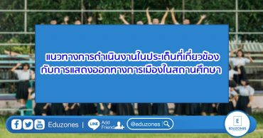 🎓 จุฬาฯ ชวนเปิดโลกการเรียนรู้ในงาน CU Open House 2026 ค้นหาเส้นทางอนาคต 28–29 มี.ค. นี้ EZ WebmasterMarch 18, 2026 🎓 จุฬาฯ ชวนเปิดโลกการเรียนรู้ในงาน CU Open House 2026 ค้นหาเส้นทางอนาคต 28–29 มี.ค. นี้ จุฬาลงกรณ์มหาวิทยาลัย เชิญชวนนักเรียน ผู้ปกครอง และผู้ที่สนใจ ร่วมเปิดประสบการณ์การเรียนรู้ในงาน CU Open… โรงเรียนนานาชาติจีน (CIS) จัดใหญ่ Open House 2026 ปั้นรากฐานเด็กประถม พร้อมยกระดับมัธยมปลายสู่มหาวิทยาลัยชั้นนำระดับโลก tui sakrapeeMarch 17, 2026 โรงเรียนนานาชาติจีน (China International School – CIS) ประสบความสำเร็จอย่างยิ่งในการจัดงาน Open House 2026 ภายใต้แนวคิด “China Now, Future Ready เปิดประตูสู่โลกอนาคตกับต้นฉบับโรงเรียนนานาชาติจีน” เมื่อวันที่ 14… กทม. เปิดฝึกอาชีพกว่า 80 วิชา ค่าเรียนเริ่ม 105 บาท เรียนจบรับใบประกาศจริง สมัคร 20 มี.ค. นี้ EZ WebmasterMarch 13, 2026 กทม. เปิดฝึกอาชีพกว่า 80 วิชา ค่าเรียนเริ่ม 105 บาท เรียนจบรับใบประกาศจริง สมัคร 20 มี.ค. นี้ กรุงเทพมหานคร เตรียมเปิดรับสมัครบุคคลทั่วไปเข้าร่วม หลักสูตรฝึกอาชีพของโรงเรียนฝึกอาชีพกรุงเทพมหานคร ประจำปี 2569 โดยเปิดสอนมากกว่า… ม.กรุงเทพ เปิดเวที “VISION HOUSE: Business Forum Series 2” ถอดรหัสอนาคตธุรกิจโลก AI ผ่านแนวคิด Nexus 3W tui sakrapeeMarch 11, 2026 VISION HOUSE: Business Forum Series 2 “Nexus 3W: Reimagining Wealth, Wellbeing & the World with AI” เปิดเวทีผู้นำอุตสาหกรรม ร่วมถอดรหัสอนาคตธุรกิจในโลก… Search for: Search Classic Blog แนวทางการดำเนินงานในประเด็นที่เกี่ยวข้องกับการแสดงออกทางการเมืองในสถานศึกษา EZ Webmaster December 2, 2020 สรุปผลการพิจารณาและจัดทําแนวทางการดําเนินงานในประเด็นที่เกี่ยวข้องกับการแสดงออกทางการเมือง ในสถานศึกษา การป้องกันและช่วยเหลือนักเรียน นักศึกษาที่ได้รับผลกระทบจากการแสดงออกทาง การเมืองในสถานศึกษา ให้มีผลสัมฤทธิ์ในทางปฏิบัติ ของคณะทํางานด้านที่ 3 ด้านการแสดงออกทาง การเมืองในสถานศึกษา หมวดที่ 1 แนวทางการจัดทําข้อเสนอแนะเชิงนโยบายในประเด็นที่เกี่ยวข้องกับการแสดงออกทางการเมือง ในสถานศึกษา เจตนารมณ์ในหมวดที่ 1 มีวัตถุประสงค์เพื่อให้เป็นแนวทางในการปฏิบัติของผู้เกี่ยวข้องใน สถานศึกษา 1. ให้สถานศึกษารับรองสิทธิเสรีภาพในการแสดงออกทางการเมืองบนพื้นฐานประชาธิปไตย 2. ให้สถานศึกษาเป็นพื้นที่ปลอดภัยในการมีส่วนร่วมและแสดงออกทางการเมือง สําหรับสมาชิก ของสถานศึกษา 3. ให้สภานักเรียนหรือตัวแทนนักเรียนนักศึกษา หรือนักเรียน นักศึกษา หรือเทียบเท่า มีหน้าที่ใน การกําหนดข้อตกลงในการแสดงออกทางการเมืองร่วมกับสถานศึกษา และคณะกรรมการ สถานศึกษา 4. ให้สถานศึกษากําหนดขั้นตอนในการสร้างพื้นที่และเอื้ออํานวยของการพูดคุยตามวิถี ประชาธิปไตย ด้วยวิธีการต่างๆ เช่น สุนทรียะสนทนา การถกแถลง การปรึกษ