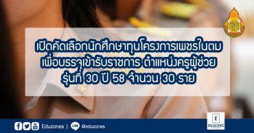 เปิดคัดเลือกนักศึกษาทุนโครงการเพชรในตม เพื่อบรรจุเข้ารับราชการ ตำแหน่งครูผู้ช่วย รุ่นที่ 30 ปี 58 จำนวน 30 ราย EZ Webmaster September 24, 2020 สำนักงานคณะกรรมการการศึกษาขั้นพื้นฐาน (สพฐ.) ส่งหนังสือถึงศึกษาธิการจังหวัด แจ้งเรื่อง การคัดเลือกนักศึกษาทุนโครงการเพชรในตมเพื่อบรรจุและแต่งตั้งเข้ารับราชการเป็นข้าราชการครูและบุคลากรทางการศึกษา ตำแหน่งครูผู้ช่วย รุ่นที่ 30 ปีการศึกษา 2558 โดยมีเนื้อหาดังนี้ ตามหนังสือที่อ้างถึง ได้แจ้งจัดสรรอัตราว่างจากผลการเกษียณข้าราชการครูและบุคลากรทางการศึกษา ตำแหน่งครูผู้สอน เมื่อสิ้นปิ้งบประมาณ พ.ศ. ๖๕๖๓ เพื่อรองรับการบรรจุนักศึกษาทุน โครงการเพชรในตม จำนวน ๓๐ อัตรา ความแจ้งแล้ว นั้น สำนักงานคณะกรรมการการศึกษาขั้นพื้นฐานพิจารณาแล้ว เนื่องจากมหาวิทยาลัยศรีนครินทรวิโรฒได้ส่งรายชื่อและผลการเรียนของนักศึกษาทุนโครงการเพชรในตม รุ่นที่ ๓๐ ปีการศึกษา ๒๕๕๘ สาขาวิชาการประถมศึกษา ตามสิ่งที่ส่งมาด้วย จึงขอให้สำนักงานเขตพื้นที่การศึกษาประสานกับสำนักงานศึกษาธิการจังหวัด เพื่อเสนอคณะกรรมการศึกษาธิการจังหวัดดำเนินการคัดเลือกนักศึกษาทุนโครงการเพชรในตม เพื่อบรรจุและแต่งตั้งเข้ารับราชการเป็นข้าราชการครูและบุคลากรทางการศึกษา ตำแหน่งครูผู้ช่วย กรณีมีสัญญาผูกพันตมโครงการพิเศษ หรือโครงการนักเรียนทุนรัฐบาล ตามหลักเกณฑ์และวิธีการที่… Continue Reading