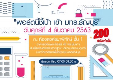 tui sakrapee November 25, 2020 ชี้เป้าเข้าป้าย! มทร.ธัญบุรีจัดโครงการอบรม “พอร์ตนี้ชี้เป้า เข้า มทร.ธัญบุรี” สมัคร 200 คนแรกรับอาหาร เครื่องดื่มฟรี tui sakrapee November 25, 2020 สำนักส่งเสริมวิชาการและงานทะเบียน มหาวิทยาลัยเทคโนโลยีราชมงคลธัญบุรี จัดโครงการอบรม “พอร์ตนี้ชี้เป้า เข้า มทร.ธัญบุรี” ในวันศุกร์ที่ 4 ธันวาคม 2563 ตั้งแต่เวลา 7.30 น. เป็นต้นไป ณ ห้องสงค์ธนาพิทักษ์ ชั้น 1 อาคารเฉลิมพระเกียรติ 48พระชันษา สมเด็จพรเทพรัตนราชสุดาฯ สยามบรมราชกุมารี มหาวิทยาลัยเทคโนโลยีราชมงคลธัญบุรี อำเภอธัญบุรี จังหวัดปทุมธานี นักเรียนผู้ลงทะเบียน 200 คนแรก จะได้รับแจกอาหารว่าง เครื่องดื่มและอาหารกลางวันโดยไม่คิดค่าใช้จ่ายใด ๆ ทั้งสิ้น… Continue Reading