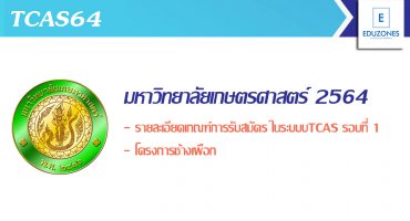 EZ Webmaster November 19, 2020 #TCAS64 โครงการช้างเผือก ม.เกษตรศาสตร์ เปิดรับสมัครนศ.ป.ตรี รอบที่ 1 (Portfolio) จำนวน 1,002 ที่นั่ง EZ Webmaster November 19, 2020 โครงการช้างเผือก มหาวิทยาลัยเกษตรศาสตร์ เปิดรับสมัครคัดเลือกบุคคลเพื่อเข้าศึกษาต่อในระดับปริญญาตรี รอบที่ 1 (Portfolio) ปีการศึกษา 2564 โดยจะเปิดรับสมัคร 2 รอบตั้งแต่วันที่ 5 ธันวาคม 2563 – 6 กุมภาพันธ์ 2564 จำนวนรับ -1,002 ที่นั่ง คณะที่เปิดรับสมัคร -คณะเกษตร จำนวน 43 ที่นั่ง -คณะประมง จำนวน 80 ที่นั่ง… Continue Reading