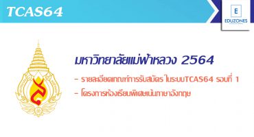 #TCAS64 ม.แม่ฟ้าหลวง เปิดรับสมัครนศ.ป.ตรี โครงการห้องเรียนพิเศษเน้นภาษาอังกฤษ ตั้งแต่วันที่ 5-20 ม.ค. 64 EZ Webmaster November 17, 2020 มหาวิทยาลัยแม่ฟ้าหลวง เปิดรับสมัครคัดเลือกบุคคลเพื่อเข้าศึกษาต่อในระดับปริญญาตรี รอบที่ 1 โครงการห้องเรียนพิเศษเน้นภาษาอังกฤษ ประจำปีการศึกษา 2564 โดยจะเปิดรับสมัครตั้งแต่วันที่ 5-20 มกราคม 2564 สาขาที่เปิดรับสมัคร -จำนวน 26 สาขา -การพัฒนาระหว่างประเทศ -การสอนภาษาจีน -การบัญชี -เศรษฐศาสตร์ -บริหารธุรกิจ -การจัดการการท่องเที่ยว -การจัดการอุตสาหกรรมการบริการ -การจัดการธุรกิจการบิน-งานบริการทางการบิน -นิติศาสตร์ -เทคโนโลยีดิจิตอลเพื่อนวัตกรรมทางธุรกิจ -วิทยาศาสตร์การกีฬาและสุขภาพ -อนามัยสิ่งแวดล้อม -การจัดการโลจิสติกส์และโซ่อุปทาน -การจัดการธุรกิจการบิน-ธุรกิจโลจิสติกส์ทางการบินระหว่างประเทศ -การจัดการธุรกิจการบิน-การปฏิบัติการทางการบิน -เทคโนโลยีหลังการเก็บเกี่ยวและโลจิสติกส์ -เทคโนโลยีหลังการเก็บเกี่ยวและโลจิสติกส์-ควบ 2 ปริญญา -วิศวกรรมซอฟต์แวร์ -เทคโนโลยีมัลติมีเดียและการสร้างภาพเคลื่อนไหว -เคมีประยุกต์ -เทคโนโลยีชีวภาพ-วิทยาศาสตร์ชีวภาพ -วิทยาศาสตร์และเทคโนโลยีการอาหาร -อาชีวอนามัยและความปลอดภัย -วิศวกรรมวัสดุ… Continue Reading